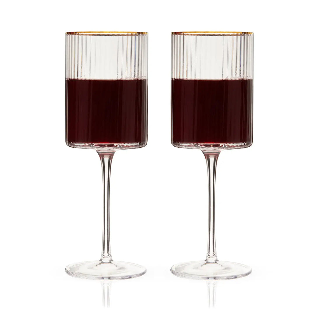 Deco Meridian Gold Rimmed Crystal Wine Glasses Set of 2