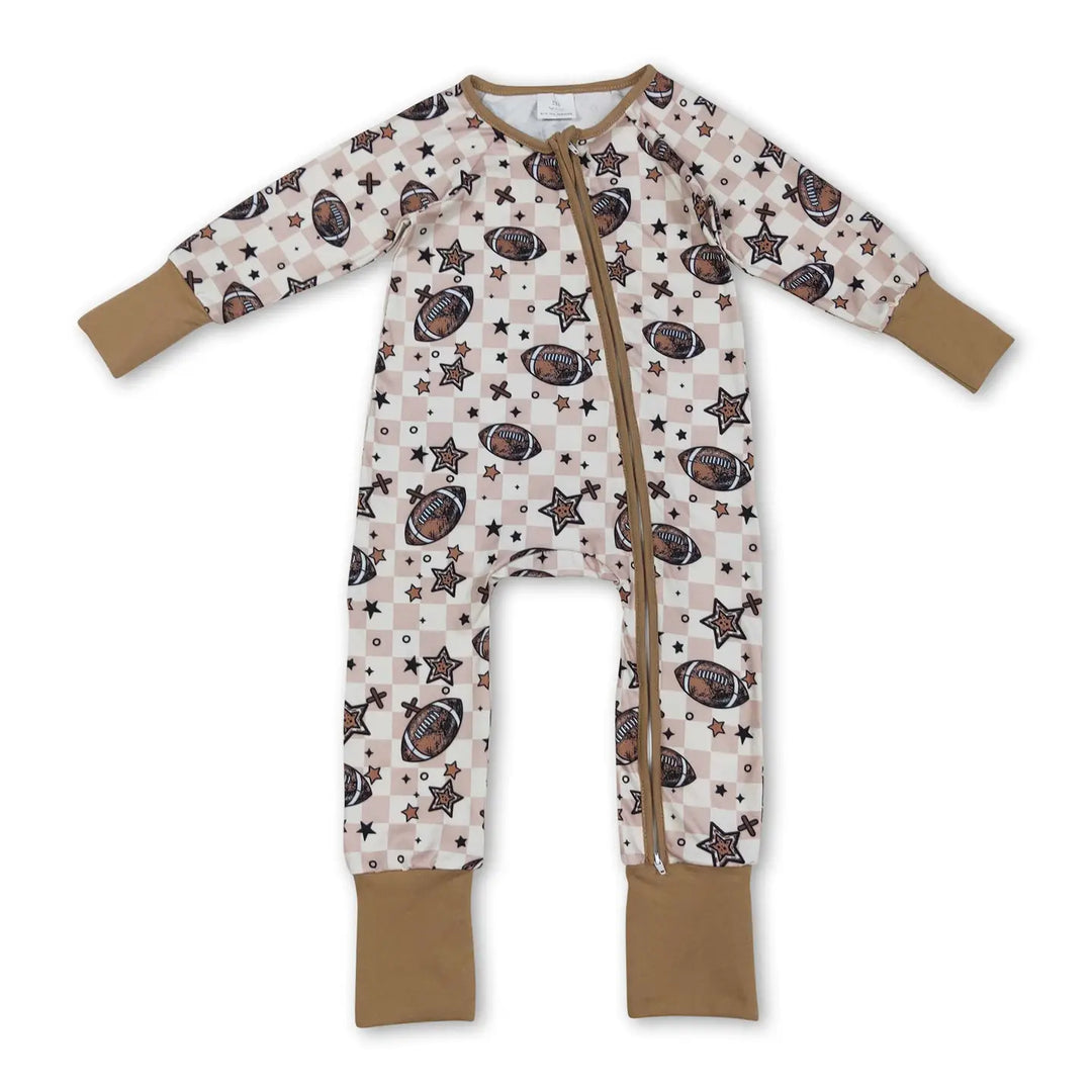 Long Sleeves Football Plaid Stars Baby Boy Zipper Romper
