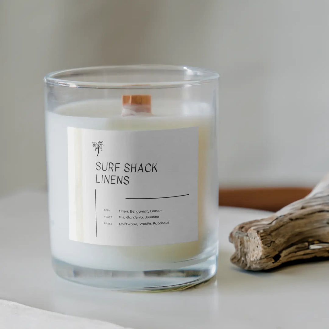 Surf Shack Linens | Luxury Coastal Wood Wick Candle