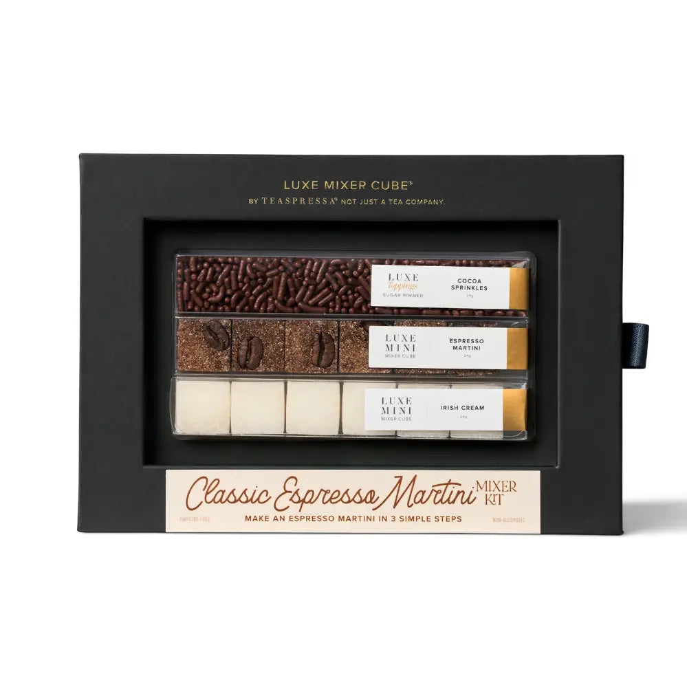 The Ultimate Coffee Cocktail Elevate your espresso martini with the Classic Espresso Martini Mixer Kit. This kit includes a bold Espresso Cube, Irish Cream cube for added creaminess, and Chocolate sprinkles for garnish, making it the perfect choice for sophisticated sips. Directions: Muddle 1-2 cubes with hot water to create a simple syrup. Add vodka, shake with ice, and garnish with coffee beans for a decadent cocktail experience.