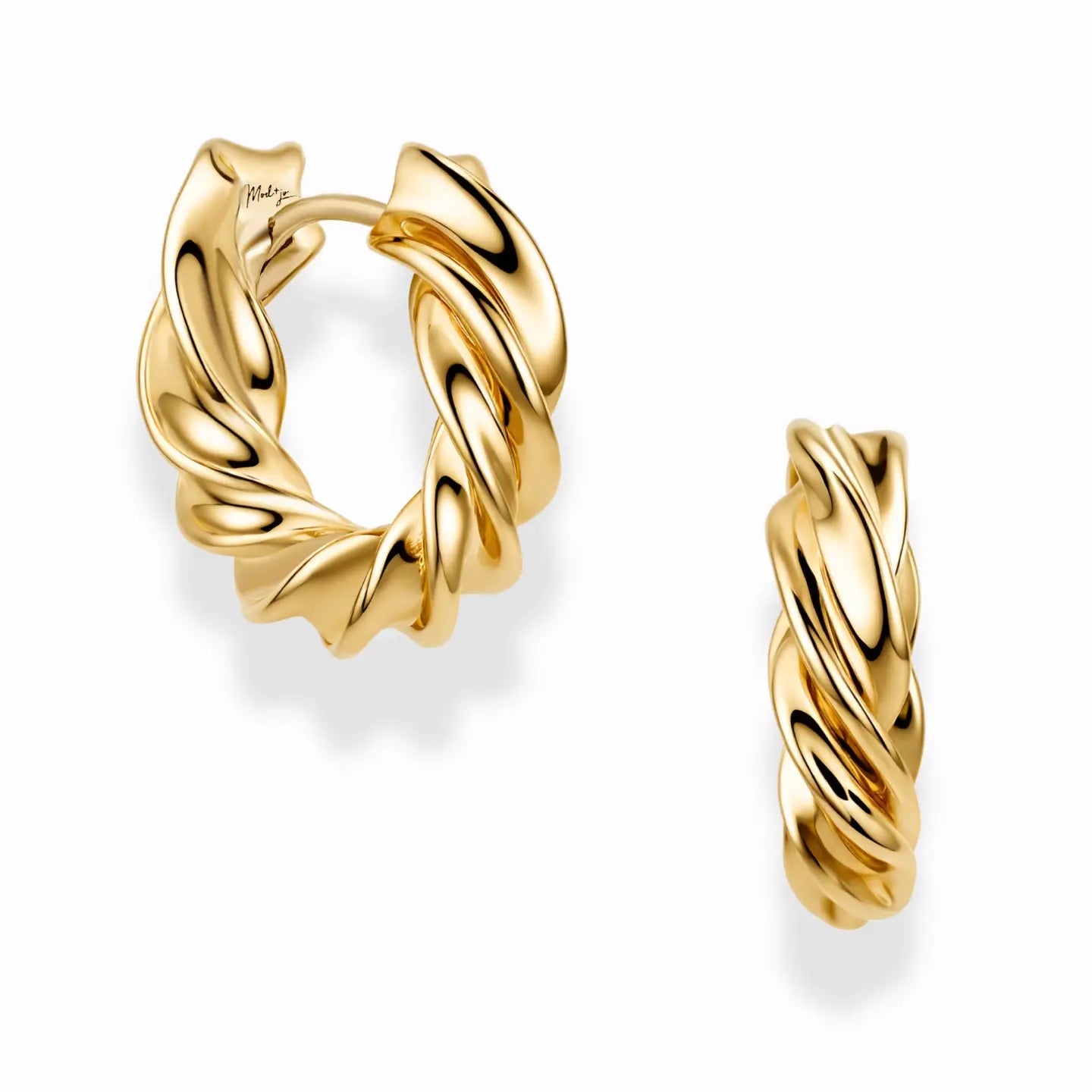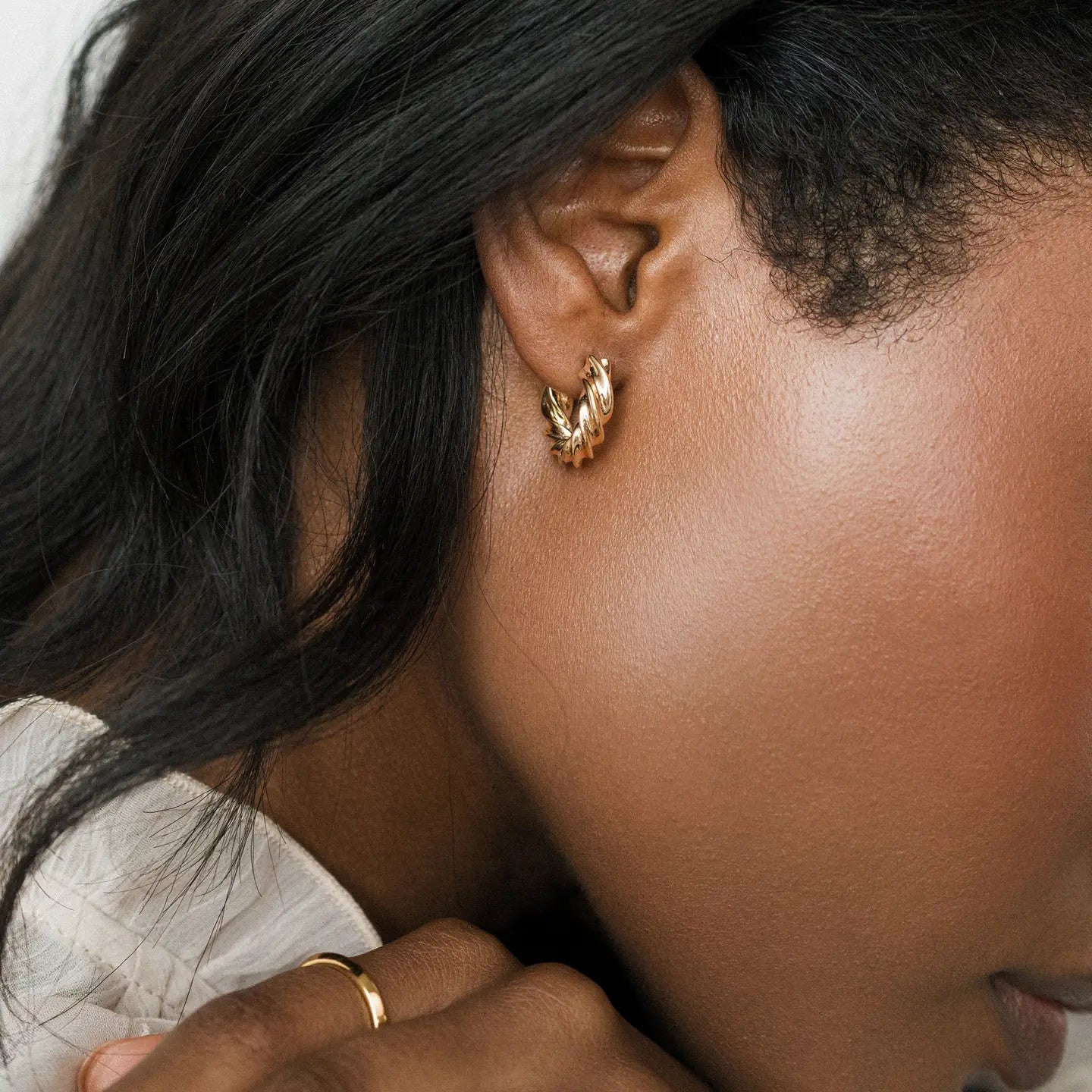 A modern twist on a classic favorite – the Daphne hoops feature a sculptural design that adds movement and texture to your everyday look. Lightweight yet eye-catching, and perfect for elevating your style—easy to wear, hard to miss. * Gold plate over brass * 10mm inner * Nickel- and lead-free