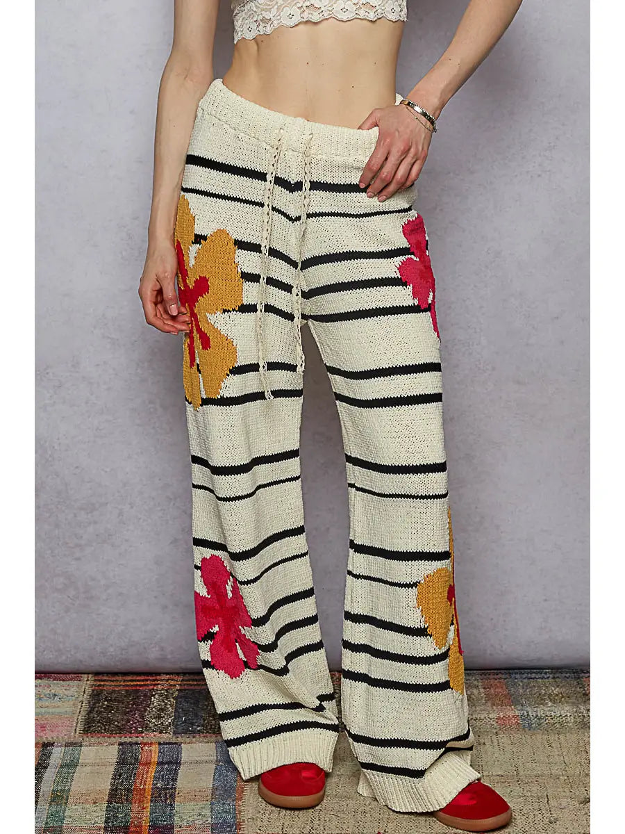 Floral Pattern Striped Chenille Sweater Pants