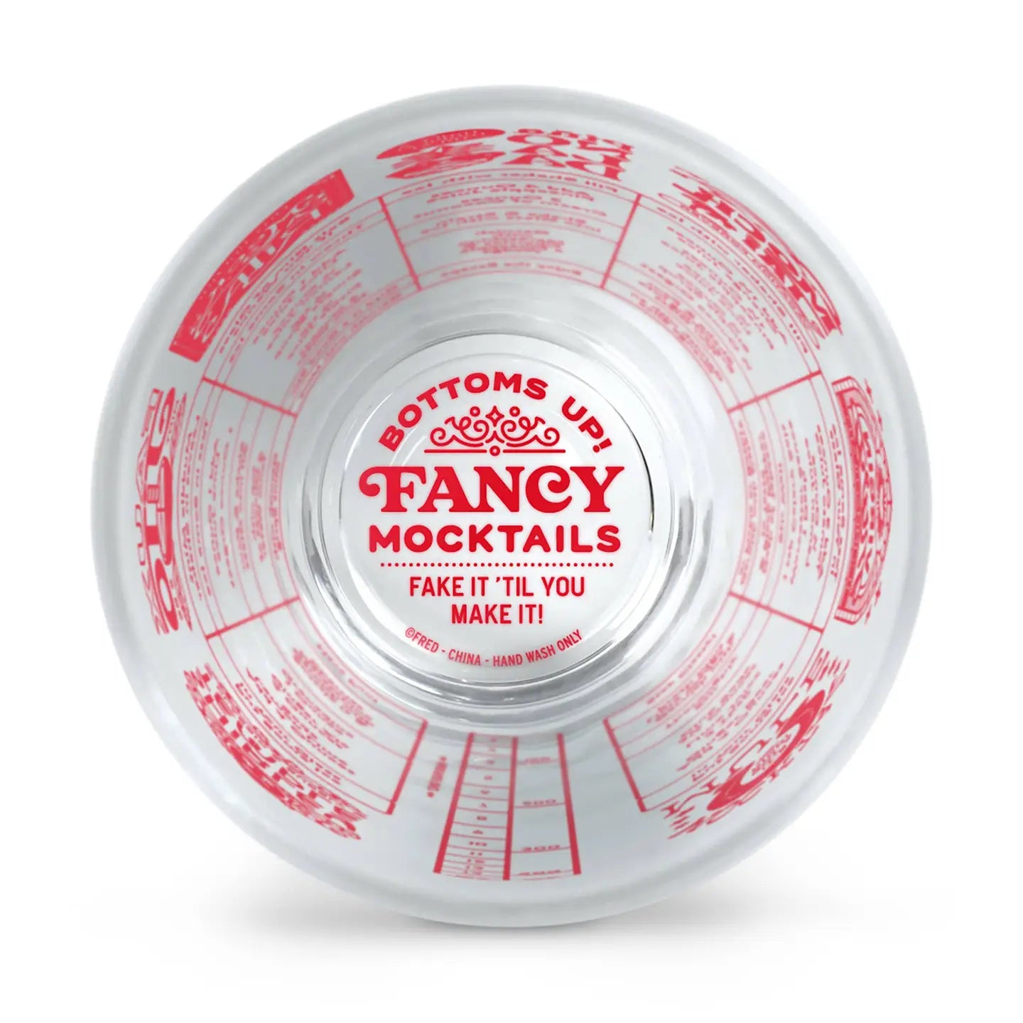 No alcohol? No problem. Raise the bar with Fred’s Good Measure – a 16-oz measuring glass printed with a curated collection of 7 tasty mocktail recipes that will appeal to the most discerning “dry” drinkers. Hand wash only. Packed in a full-color gift box.