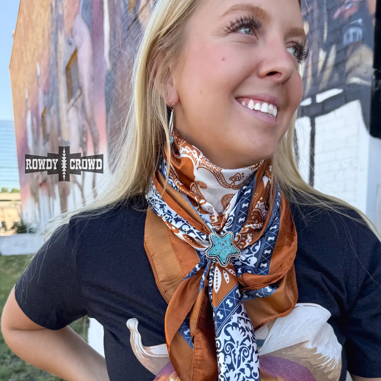 We're feeling like we're in high cotton with our High Country Wild Rag. With a fun inverted design with a navy western border, it's sure to turn heads! 100% Polyester 36" x 36"