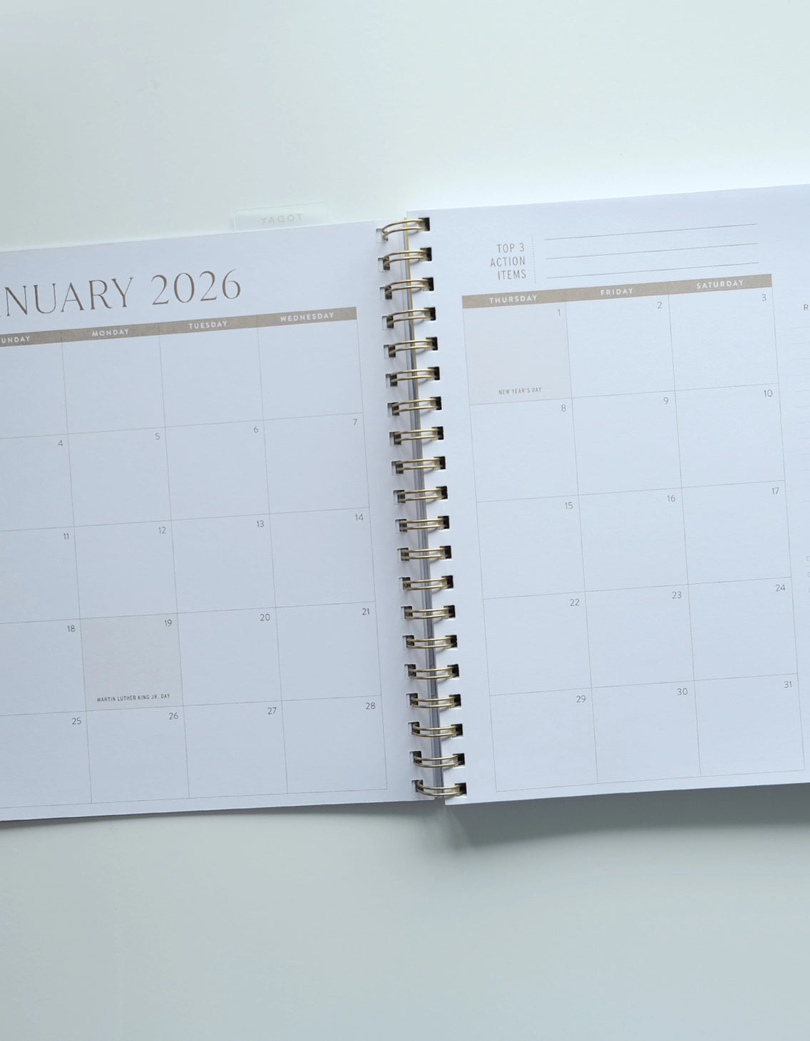 A new format of Planner for 2026! This larger-scale option is perfect for folks who prefer larger blocks fields for their plans. This linen-finished soft-cover planner features bold, full-color graphics, sections for daily, weekly, and monthly plans, as well as handy year-at-a-glance, goal-tracking, and notes sections. Fun –yet functional– additions like a detachable ruler bookmark make sure all your plans fall in line…beautifully! • 8″ X 10″ • GOLD FOIL COVER FINISHING • JANUARY 2026 THRU DECEMBER 2026 • US HOLIDAYS & MOON PHASES NOTED THROUGHOUT