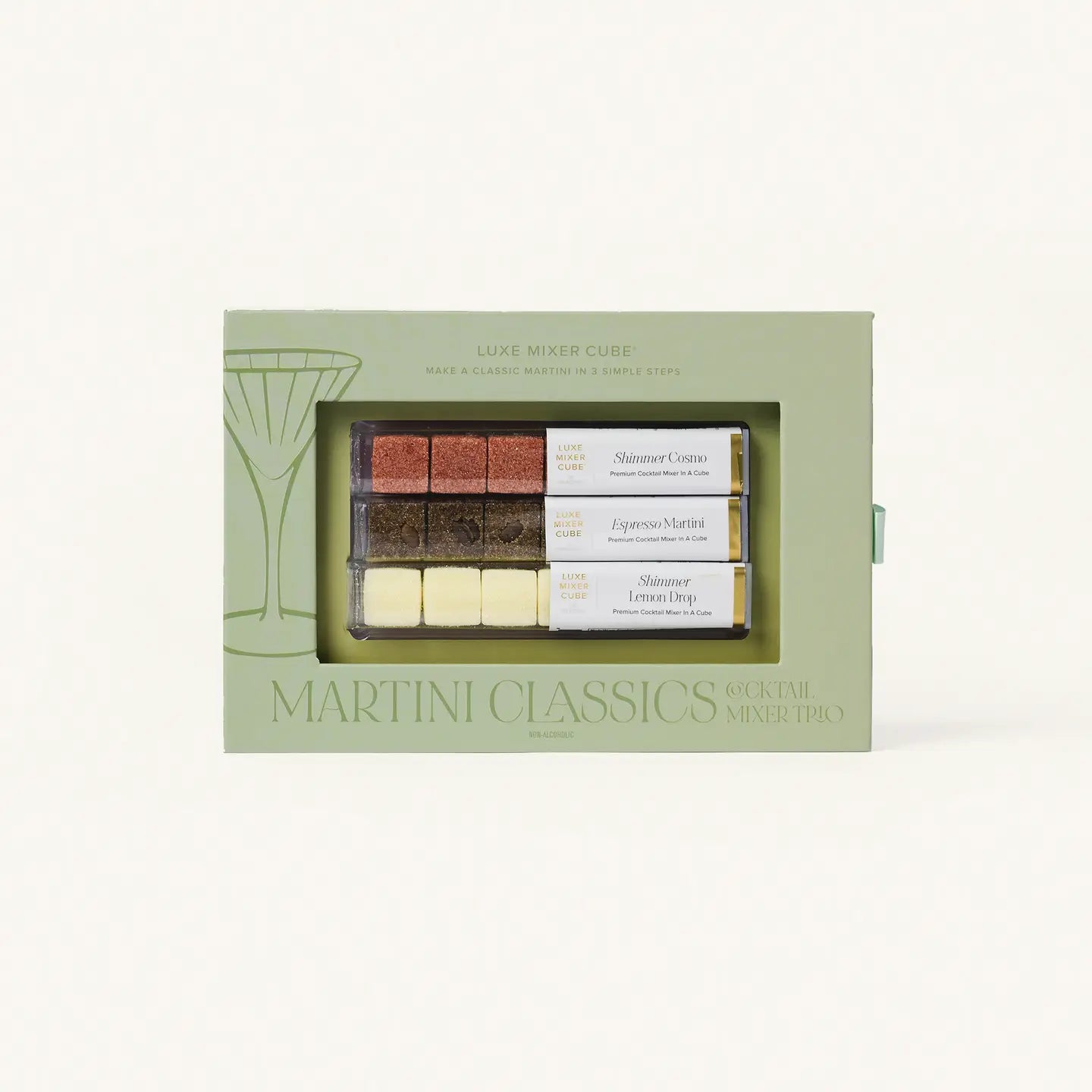 The Ultimate Martini Trio, Master Your Mix Elevate your cocktail game with the Evergreen Martini Kit, a trio of tantalizing flavors designed to turn your at-home martini moments into a masterpiece. Featuring the bold kick of Espresso Martini, the refreshing zest of Lemon Drop, and the classic vibrance of Cosmo, these cubes make creating specialty vodka cocktails at home a breeze. Each cube is crafted for simplicity and versatility, so you can easily adjust your flavors for a customized cocktail experience. Flavours Included: Espresso Martini, Lemon Drop, Cosmo.