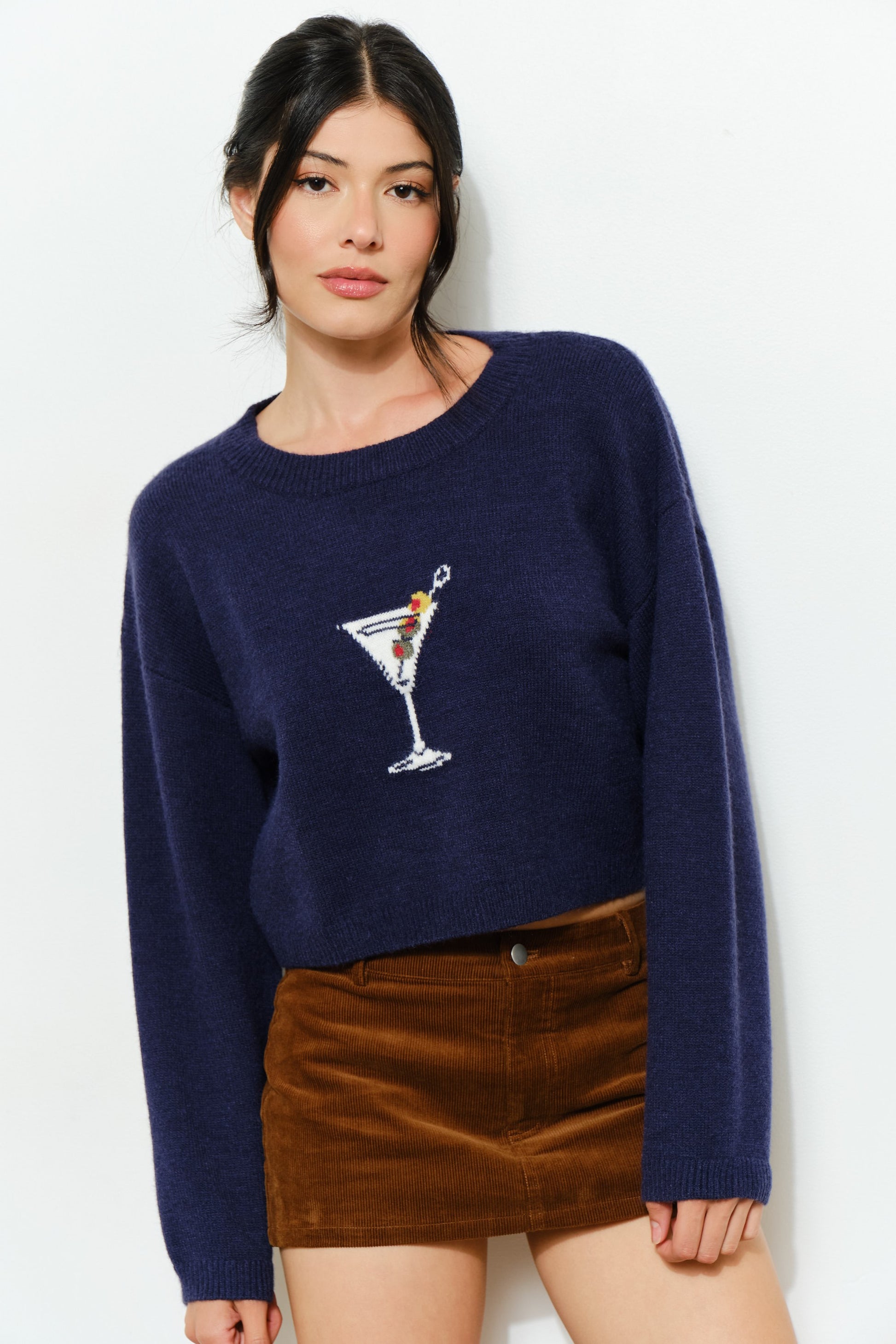 Shake up your style with the Martini Sweater! This trendy cropped sweater features a playful silhouette and classic long sleeves, making it perfect for pairing with high-waisted jeans or skirts. Soft and comfy, it's your new go-to for adding a flirty, modern twist to any outfit.