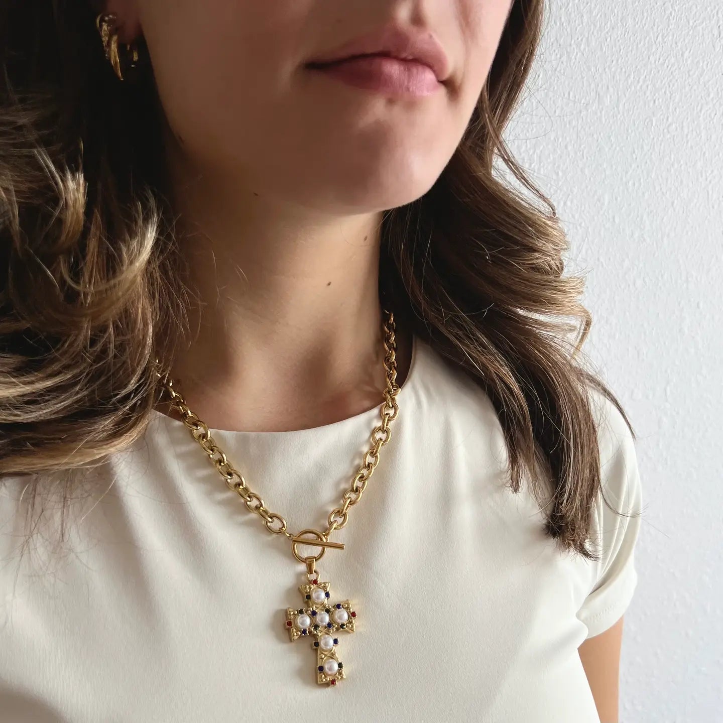 • Length: 20" + 1.5" pendant • Front toggle closure • Waterproof • Tarnish resistant • 18K Gold plated stainless steel • Hypoallergenic
