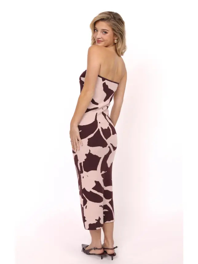 My Dearest Knit Jacquard Tube Dress : Burgundy Pink