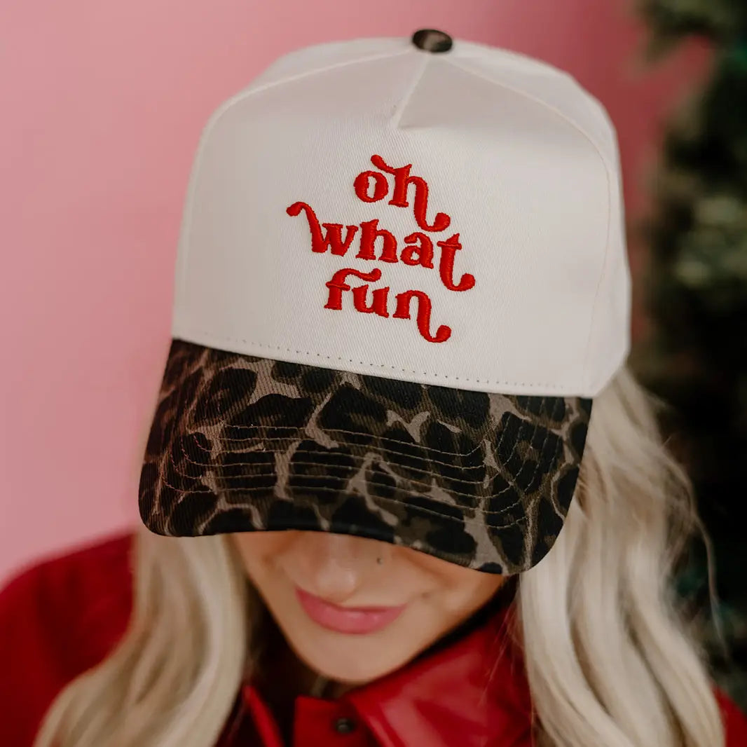 STYLE: Vintage Snapback Trucker COLOR: Leopard/Natural FRONT EMBROIDERY: Red Puff