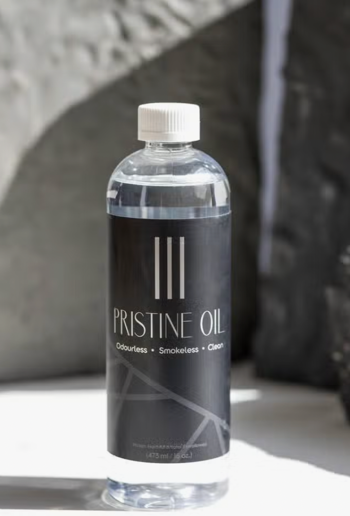 Pristine Oil® is a natural and biodegradable mineral oil that's completely clean burning and used exclusively with the Everlasting Candle. Each bottle provides 50 hours of smoke-free, scent-free candlelight ambience.