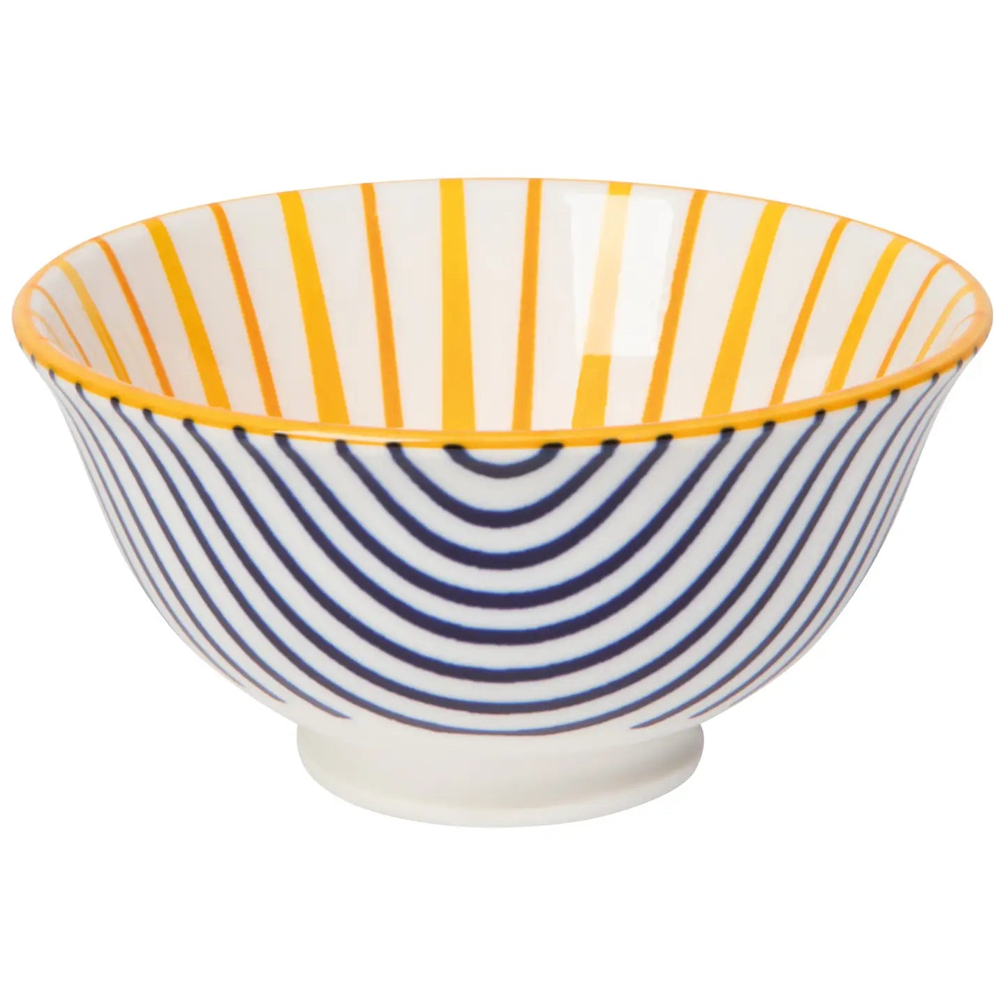 The eye-catching Sunburst 3.5" porcelain bowl with its contrasting pattern is stunning, as a collection or accent piece. The stamped design features a bold pattern while the embossed surface is a delight to the touch. The lively stamped and stenciled pattern that adorns this bowl makes it a thrill for the eye from any perspective. Dimensions: DIA3.5 x H2in Material: 100% Porcelain Care Instructions: Dishwasher and microwave safe. Capacity: 5 oz