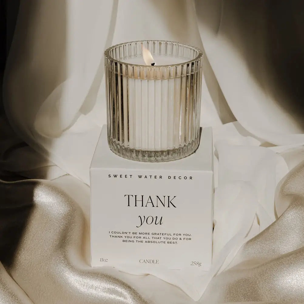 Thank You Soy Candle - Ribbed Glass Jar with Box
