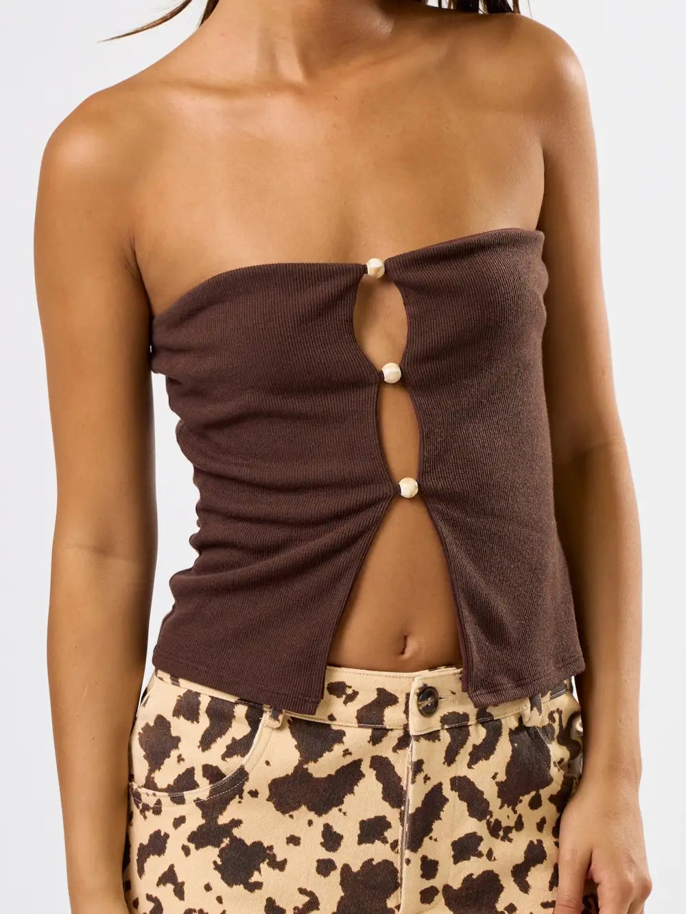 Sleek and understated, this trim wood tube top delivers modern boho vibes with a clean silhouette and subtle natural accents. Perfect for pairing with high-waisted denim shorts or flowy skirts, it's a fresh staple for effortless summer style and casual western looks.